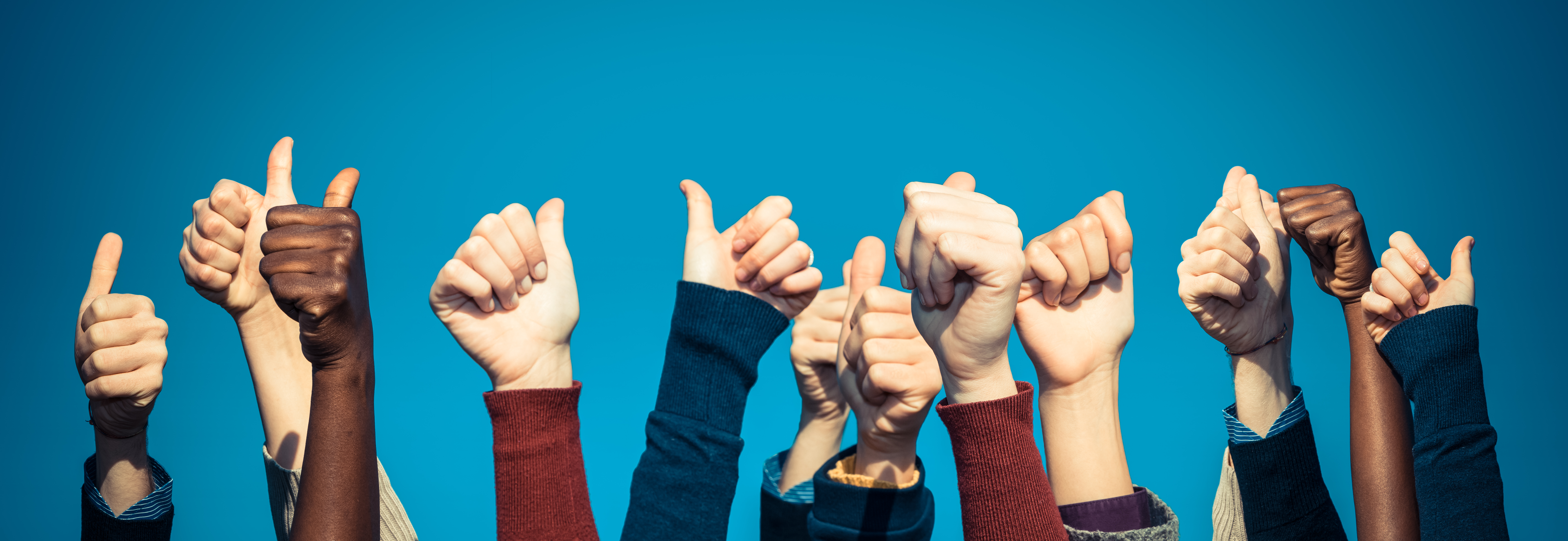 Ethnically diverse crowd of thumbs up